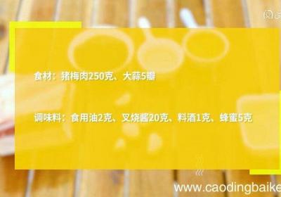 发布时间: 15小时前步骤1食材:猪梅肉250克、大蒜5瓣 。调味料:食用油2克、叉烧酱20克、料酒1克、蜂蜜5克 。步骤2大蒜剁成蒜蓉 。步骤3猪梅肉切厚片 。步骤4放入叉烧酱、蒜蓉、料酒,拌匀,冷藏腌制24小时 。步骤5腌制好的肉抹上蜂蜜,放入烤箱,上下温度...