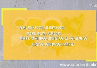 发布时间: 15小时前步骤1食材:扁豆200克,五花肉200克,蒜3瓣,姜3克,大葱10克 。调味料:食用油8克,豆瓣酱3克,盐1克,生抽2克,料酒2克,胡椒粉2克,鸡精2克 。步骤2扁豆去筋,洗净 。步骤3蒜切片 。步骤4姜切片 。【红烧肉烧扁豆的做法 红烧肉...