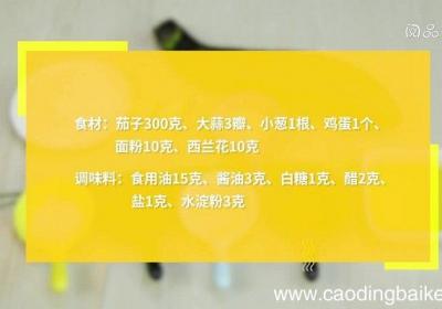发布时间: 9小时前步骤1食材:茄子300克、大蒜3瓣、小葱1根、鸡蛋1个、面粉10克、西兰花10克 。调味料:食用油15克、酱油3克、白糖1克、醋2克、盐1克、水淀粉3克 。步骤2茄子切长条 。步骤3大蒜切末 。步骤4小葱切葱花 。步骤5西兰花放入沸水锅中,...
