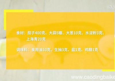 发布时间: 9小时前步骤1食材:茄子400克、大蒜5瓣、大葱10克、水淀粉3克、上海青20克 。调味料:食用油10克、生抽3克、盐1克、鸡精1克 。步骤2上海青对半切开,放入沸水锅中焯烫40秒,捞出备用 。步骤3茄子切块 。步骤4大蒜切末 。步骤5大葱切小段...