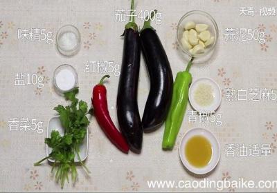 发布时间: 9小时前步骤1准备食材:茄子400g、熟白芝麻5g、青椒5g、红椒5g、香菜5g、蒜泥50g、盐10克、味精5克、香油适量 。步骤2将洗净的茄子切成两段,放在蒸锅中蒸熟 。步骤3青椒切末 。步骤4红椒切末 。步骤5香菜切末 。步骤6蒜切成末备用 。...