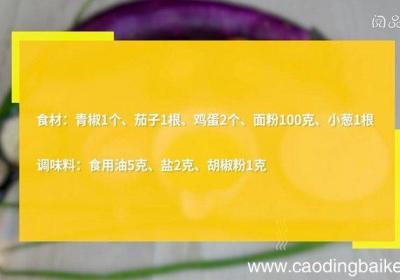 发布时间: 9小时前步骤1食材:青椒1个、茄子1根、鸡蛋2个、面粉100克、小葱1根 。调味料:食用油5克、盐2克、胡椒粉1克 。步骤2青椒切丝 。步骤3茄子切丝 。步骤4小葱切葱花 。步骤5盆中放入面粉、鸡蛋,加入适量清水拌匀成面糊,再加入青椒丝、茄子丝、葱...