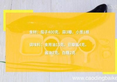 发布时间: 9小时前步骤1食材:茄子400克,蒜3瓣,小葱1根调味料:食用油15克,豆瓣酱4克,酱油2克,白糖2克步骤2茄子切条 。步骤3蒜切末 。步骤4小葱切葱花 。步骤5热锅倒油,油温8成热时,下茄子,炸1分钟,捞出 。步骤6锅中留少许底油,下豆瓣酱、蒜,...