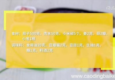 步骤1所需食材:肉末80克,茄子2根,青椒1个,生姜1块,大蒜2瓣,小葱2根 。所需调料:淀粉1汤匙,生抽1汤匙,老抽2克,醋2克,蚝油1汤匙,盐1茶匙,鸡精半茶匙 。步骤2姜切末 。步骤3蒜切末 。步骤4小葱切葱花 。步骤5青椒去籽,切块...