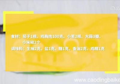 发布时间: 7小时前步骤1食材:茄子1根、鸡胸肉100克、小葱2根、大蒜3瓣、小米椒2个 。调味料:生抽2克、盐1克、糖1克、香油2克、鸡精1克 。步骤2姜切片,小葱切葱花,大蒜切末,小米椒切圈 。步骤3鸡胸肉放入冷水锅中,加姜、料酒,煮15分钟,捞出冷却,撕...