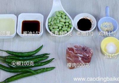 发布时间: 15小时前步骤1准备食材:尖椒100克、毛豆100克,瘦肉100克、盐1勺、酱油1勺、老抽1勺、鸡精1勺、食用油适量 。步骤2毛豆提前剥壳,放入清水中清洗干净 。步骤3尖椒切丝 。步骤4瘦肉切丝 。步骤5把锅烧热,先不放油,直接把辣椒放进去炒干水分,...