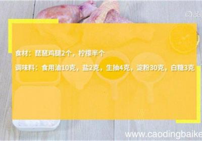 发布时间: 13小时前步骤1食材:琵琶鸡腿2个,柠檬半个调味料:食用油10克,盐2克,生抽4克,淀粉30克,白糖3克步骤2琵琶鸡腿去骨,整块剥下鸡腿肉,用刀背轻轻敲打鸡腿肉 。步骤3柠檬压汁 。步骤4鸡腿肉中加入5克食用油、盐、生抽、糖、柠檬汁,腌制20分钟 。...