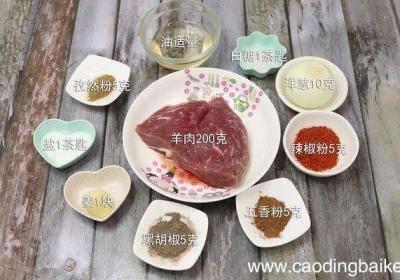 发布时间: 13小时前步骤1准备食材:羊肉200克、盐1茶匙、姜1块、黑胡椒5克、五香粉5克、孜然粉5克、辣椒粉5克、油适量、白糖1茶匙、洋葱10克 。步骤2羊肉洗净切小块 。步骤3姜切末 。步骤4洋葱洗净切碎 。步骤5首先碗中倒入羊肉、盐、黑胡椒、五香粉、孜然...