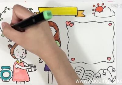 发布时间: 6小时前1.首先在中间画一个好看的边框,再在下方画上一个递礼物的小女孩和一个女老师;【教师节快乐的手抄报 教师节快乐的手抄报画法】2.然后在小女孩头上画一个爱心状的边框,老师的右边画一个波浪形的方框;3.再画上一本书,小花和云朵,墨水这些装饰物;4...