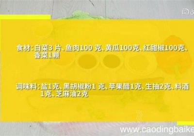 发布时间: 10小时前步骤1食材:白菜3片、鱼肉100克、黄瓜100克、红甜椒100克、香菜1棵 。调味料:盐1克、黑胡椒粉1 克、苹果醋1克、生抽2克、料酒1克、芝麻油2克 。步骤2鱼肉剁成泥,装入碗中,加盐、料酒,拌匀 。步骤3黄瓜切条 。步骤4红甜椒切条...