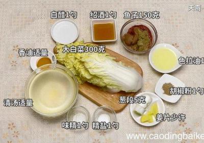 发布时间: 10小时前步骤1准备食材:大白菜300克、鱼子150克、葱段5克、姜片少许、精盐1勺、味精1勺、绍酒1勺、白醋1勺、胡椒粉1勺、香油适量、色拉油1勺、清汤适量 。步骤2将白菜洗净切段 。步骤3鱼子洗净放入沸水中焯透,捞出沥干备用 。步骤4锅中加油烧热...