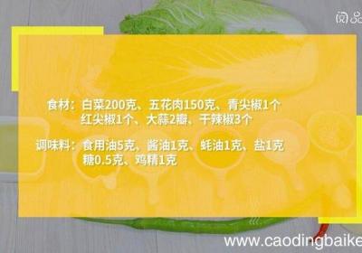 发布时间: 9小时前步骤1食材:白菜300克,泡椒5克,大葱10克,蒜2瓣,姜1克调味料:食用油5克,豆瓣酱2克,白糖3克,醋5克,生抽2克,鸡精2克,水淀粉2克步骤2白菜切小块 。步骤3泡椒切碎 。步骤4大葱切末 。步骤5蒜切末 。步骤6姜切末 。步骤7热锅...