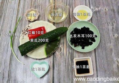 发布时间: 10小时前步骤1准备食材:黄瓜200克、水发木耳100克、蒜3瓣、小葱1根、红椒10克、油适量、盐1茶匙、生抽1茶匙、鸡精1茶匙 。步骤2黄瓜去皮切片 。步骤3木耳洗净备用 。步骤4红椒切片 。步骤5蒜切片 。步骤6小葱切葱花 。步骤7首先锅内倒水,...