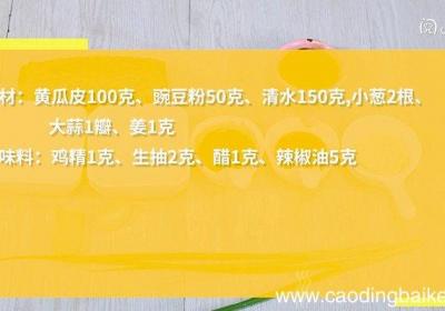 发布时间: 10小时前【黄瓜凉粉的做法 黄瓜凉粉怎么做】步骤1食材:黄瓜皮100克、豌豆粉50克、清水150克、小葱2根、大蒜1瓣、姜1克 。调味料:鸡精1克、生抽2克、醋1克、辣椒油5克 。步骤2黄瓜皮放入料理机中,加70克清水,搅拌成汁,用纱布过滤,挤出黄瓜...