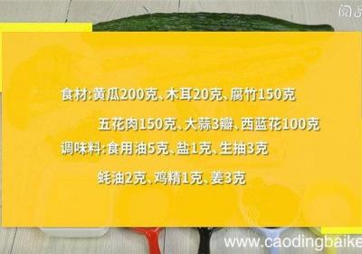 发布时间: 10小时前步骤1食材:黄瓜200克、木耳20克、腐竹150克、五花肉150克、大蒜3瓣、西蓝花100克 。调味料:食用油5克、盐1克、生抽3克、蚝油2克、鸡精1克、姜3克 。步骤2黄瓜切片 。步骤3木耳用水泡发 。步骤4腐竹用水泡发,切寸段 。步骤5...