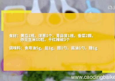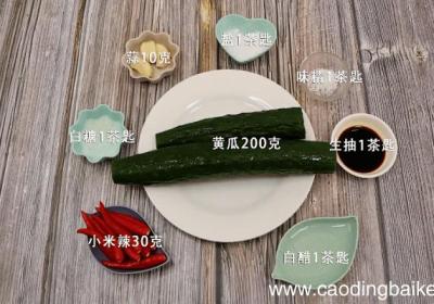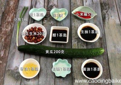发布时间: 7小时前步骤1准备食材:黄瓜200克、盐1茶匙、蒜3瓣、小葱1根、生抽1茶匙、酱油1茶匙、醋1茶匙、香油1茶匙、熟花生米20克、小米椒5克、白糖1茶匙步骤2黄瓜洗净用刀背拍碎 。【刀拍凉拌黄瓜怎么做好吃 刀拍凉拌黄瓜的做法】步骤3再斜刀切小块 。步...