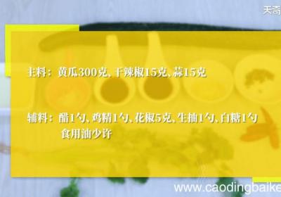 发布时间: 7小时前步骤1食材:黄瓜300克、干辣椒5个辅料:醋1勺、鸡精1勺、花椒5克、生抽1勺、白糖1勺、食用油少许步骤2将黄瓜去皮步骤3切成细条步骤4干辣椒切碎步骤5蒜切末,蒜末放入黄瓜上步骤6锅中倒油,放入少许花椒【凉拌黄瓜怎么做好吃 凉拌黄瓜可以怎么...