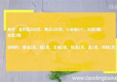 发布时间: 7小时前步骤1食材:金针菇200克、黄瓜100克、小米椒3个、大蒜3瓣、香菜2颗调味料:香油2克、醋1克、生抽2克、蚝油1克、盐1克、鸡精1克步骤2金针菇去蒂,切散,锅中水沸后,下入金针菇,煮3分钟,捞出 。步骤3黄瓜去皮,切丝 。步骤4小米椒切碎...