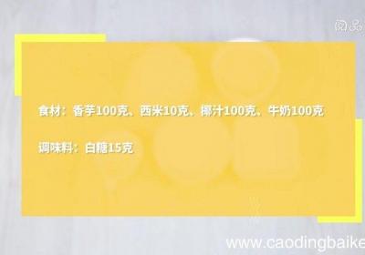 发布时间: 13小时前步骤1食材:香芋100克、西米10克、椰汁100克、牛奶100克调味料:白糖15克步骤2香芋切小块 。步骤3锅中加入适量水,水沸时,放入西米,一边煮一边搅拌,煮至透明,捞出,放入冷水中 。步骤4冷锅中,放入白糖,小火翻炒,白糖变黄时,放入芋...