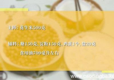 发布时间: 14小时前步骤1准备食材:花生米200克、淀粉50克、白糖1汤勺、鸡蛋1个步骤2首先碗中倒入鸡蛋,倒入花生米、淀粉、白糖搅拌均匀 。步骤3然后起锅倒油,油温5成热放入花生米,用筷子搅动以免粘连,接着炸至外皮酥脆至金黄捞出控油 。步骤4最后装盘即可 。...