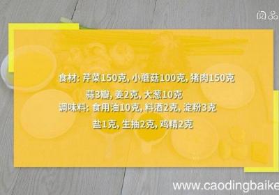 发布时间: 8小时前步骤1食材:芹菜150克,小蘑菇100克,猪肉150克,蒜3瓣,姜2克,大葱10克 。调味料:食用油10克,料酒2克,淀粉3克,盐1克,生抽2克,鸡精2克 。步骤2猪肉切丝,加入料酒、淀粉,拌匀,腌制15分钟 。步骤3芹菜切片 。步骤4小蘑...