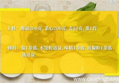 发布时间: 7小时前步骤1准备食材:水发蘑菇200克,菜心200克,姜1块,葱1段,盐1茶匙,味精1茶匙,胡椒粉1茶匙,水淀粉1汤匙,油适量 。步骤2葱切段,姜切片,蘑菇去蒂,对半开,菜心掰成片 。步骤3锅中烧沸水,放入菜心,捞出沥干水分,装盘 。步骤4锅内烧...