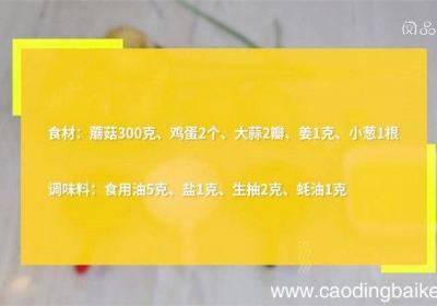 发布时间: 7小时前步骤1【蘑菇烧鸡蛋怎么做 蘑菇烧鸡蛋的做法】食材:蘑菇300克、鸡蛋2个、大蒜2瓣、姜1克、小葱1根、食用油5克、盐1克、生抽2克、蚝油1克 。步骤2蘑菇切片 。步骤3大蒜切末 。步骤4姜切末 。步骤5小葱切葱花 。步骤6鸡蛋打散 。步骤7...