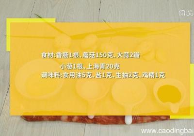 发布时间: 7小时前步骤1食材:香肠1根、蘑菇150克、大蒜2瓣、小葱1根、上海青20克、食用油5克、盐1克、生抽2克、鸡精1克 。步骤2上海青放入沸水锅中,煮40秒,捞出备用 。步骤3蒸锅中倒入适量清水煮沸,放入香肠蒸15分钟 。步骤4取出,切片 。步骤5蘑...