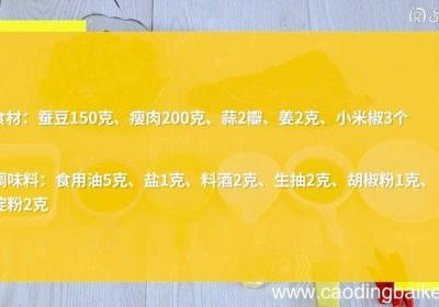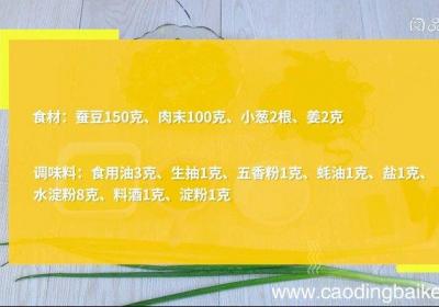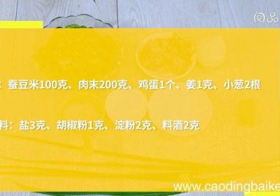 发布时间: 14小时前步骤1食材:蚕豆米100克、肉末200克、鸡蛋1个、姜1克、小葱2根 。调味料:盐3克、胡椒粉1克、淀粉2克、料酒2克 。步骤2姜切末 。步骤3小葱切葱花 。步骤4肉末中,加入1克盐,料酒、淀粉、1个鸡蛋清,沿同一方向搅拌至黏稠 。步骤5锅...