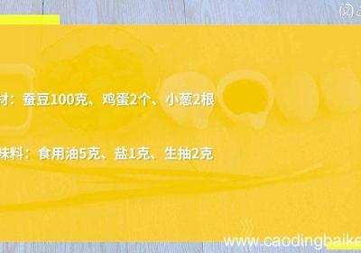 发布时间: 14小时前步骤1食材:蚕豆100克、鸡蛋2个、小葱2根 。调味料:食用油5克、盐1克、生抽2克 。步骤2蚕豆剥壳,取蚕豆米备用 。步骤3小葱切葱花 。步骤4鸡蛋打散 。步骤5热锅倒油,油温6成热时,倒入蛋液,炒散,盛出 。步骤6锅里留底油,倒入蚕豆米...