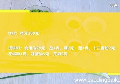 发布时间: 14小时前步骤1食材:蚕豆300克 。调味料:食用油20克,盐1克,糖2克,醋1克,十三香粉2克,花椒粉1克,辣椒油5克,芝麻3克 。步骤2蚕豆放入沸水中煮10分钟,捞出控水 。步骤3热锅倒油,冷油下入蚕豆,中火慢炸至蚕豆膨胀,捞出 。步骤4油温升至...
