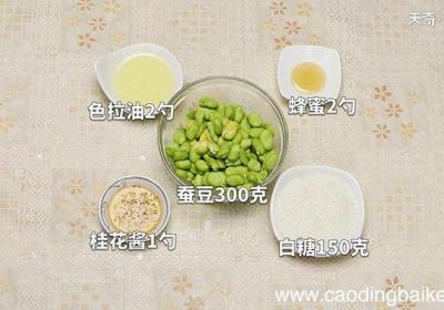 发布时间: 14小时前步骤1准备食材:蚕豆300克、桂花酱1勺、蜂蜜2勺、色拉油2勺、白糖150克 。步骤2将冷水倒入锅中,放入洗净的蚕豆,盖上锅盖煮至断生,用漏勺捞出沥干水分 。【蜜汁蚕豆的做法 蜜汁蚕豆怎么做】步骤3炒锅置中火上,加入少许色拉油,烧至三成热,...