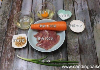 发布时间: 9小时前步骤1准备食材:瘦肉200克、胡萝卜50克、鸡蛋1个、油适量、盐1茶匙、生粉20克、虾皮5克、小葱1根 。步骤2瘦肉洗净剁成末 。步骤3胡萝卜洗净切片 。步骤4小葱切葱花 。步骤5首先碗中倒入瘦肉末,再放入生粉、鸡蛋、盐,搅拌成黏糊肉泥状态...