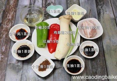 发布时间: 9小时前步骤1准备食材:鸡腿菇200克、五花肉100克、油适量、盐1茶匙、鸡精1茶匙、耗油1茶匙、生抽1茶匙、老抽1茶匙、十三香1茶匙、青椒20克、红椒15克、老干妈1茶匙、小葱1根 。步骤2鸡腿菇洗净切片 。步骤3五花肉切片 。步骤4青椒切丝 。...