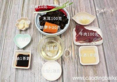 发布时间: 9小时前步骤1准备食材:牛肉100克、木耳100克、红椒10克、胡萝卜20克、生姜1块、大蒜3瓣、油适量、盐1茶匙、生抽1茶匙、料酒1茶匙、生粉1茶匙、小葱1根 。步骤2牛肉洗净切片 。步骤3木耳泡发撕小朵 。步骤4红椒切片 。步骤5胡萝卜切片 。...