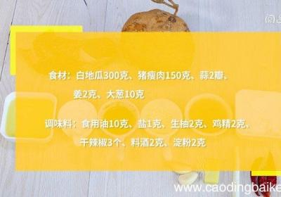 发布时间: 8小时前步骤1食材:白地瓜300克,猪瘦肉150克,蒜2瓣,姜2克,大葱10克 。调味料:食用油10克,盐1克,生抽2克,鸡精2克,干辣椒3个,料酒2克,淀粉2克 。步骤2白地瓜去皮,切片 。步骤3蒜切片 。步骤4姜切丝 。步骤5大葱切片 。步骤6...