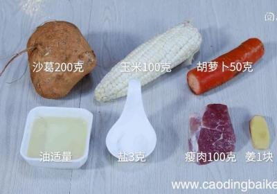 发布时间: 11小时前步骤1准备食材:沙葛200克、玉米100克、瘦肉100克、胡萝卜50克、生姜1小块、盐3克、油适量 。步骤2瘦肉切块 。步骤3玉米切块 。步骤4沙葛剥去外皮,切成小块 。步骤5胡萝卜去皮,切块 。步骤6生姜切片 。步骤7将食材放入砂锅中,倒...