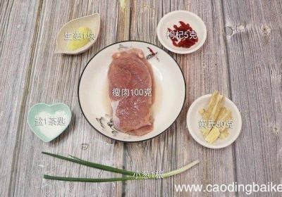 发布时间: 12小时前步骤1准备食材:黄芪50克、瘦肉100克、姜1块,枸杞5克、小葱1根 。步骤2黄芪洗净 。步骤3瘦肉洗净切条 。步骤4枸杞浸泡5分钟 。步骤5姜切片 。步骤6小葱切葱花 。步骤7首先锅内倒水,水开放入黄芪、姜,大火煮沸 。步骤8然后倒入猪肉...