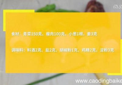 发布时间: 11小时前步骤1食材:青菜150克、瘦肉100克、小葱1根、姜3克 。调味料:料酒2克、盐2克、胡椒粉1克、鸡精2克、淀粉3克 。【青菜猪肉汤的做法 青菜猪肉汤怎么做】步骤2瘦肉切片,加入料酒、淀粉,拌匀,腌制15分钟 。步骤3小葱切葱花 。步骤4姜...