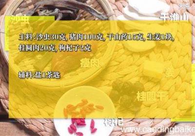 发布时间: 11小时前步骤1所需食材:沙虫30克,猪肉100克,干山药15克,生姜1块,桂圆肉20克,枸杞子2克、盐1茶匙 。步骤2瘦肉洗净切片 。步骤3姜切片 。步骤4沙虫切段 。步骤5加水泡15分钟 。【沙虫瘦肉汤的做法 沙虫瘦肉汤怎么做】步骤6炖锅中加水1...