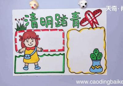 发布时间: 7小时前1、首先在顶部写上“清明踏青”的标语 。2、然后在左边画一个小女孩 。3、接着在右边画仙人球、风筝和写字框 。【清明时节手抄报 清明时节手抄报怎么画】4、接下来在左边画两个菱形写字框 。5、最后把画好的元素都涂上相应的颜色即可 。...