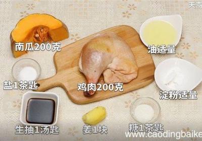 发布时间: 14小时前步骤1准备食材:南瓜200克,鸡肉200克,生抽1汤匙,姜1块,糖1茶匙,油1汤匙,淀粉1汤匙,盐1茶匙步骤2鸡肉切块,放入碗中,姜切丝,南瓜去皮切块 。步骤3【南瓜蒸鸡怎么做 南瓜蒸鸡的做法】鸡块加入姜丝、生抽、糖、淀粉、盐、油,拌匀,腌...
