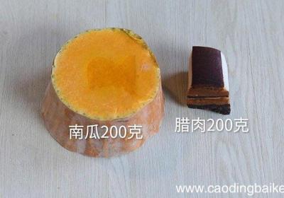 发布时间: 12小时前步骤1准备食材:南瓜200克、腊肉200克 。步骤2南瓜去皮洗净切块,装盘 。步骤3锅中加入适量水,放入腊肉煮20分钟 。步骤4捞出放凉切片 。步骤5摆入盛有南瓜的盘中 。步骤6锅中加入适量水大火烧开,放入腊肉南瓜蒸20分钟 。【南瓜蒸咸肉...
