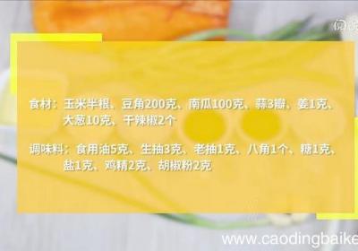 发布时间: 12小时前步骤1【玉米豆角南瓜怎么炖 玉米豆角南瓜】食材:玉米半根、豆角200克、南瓜100克、蒜3瓣、姜1克、大葱10克、干辣椒2个 。调味料:食用油5克、生抽3克、老抽1克、八角1个、糖1克、盐1克、鸡精2克、胡椒粉2克 。步骤2玉米切段、豆角去...