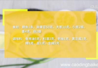 发布时间: 12小时前步骤1食材:鲤鱼1条、鲜黄豆50克、大葱10克、小葱2根、姜4克、蒜2瓣 。调味料:食用油5克、料酒3克、老抽1克、黄豆酱2克、糖1克、盐1克、生抽2克 。步骤2鲤鱼两面切花刀、小葱切葱花、蒜切片、姜切片、大葱切段 。步骤3锅里倒油、油温4...