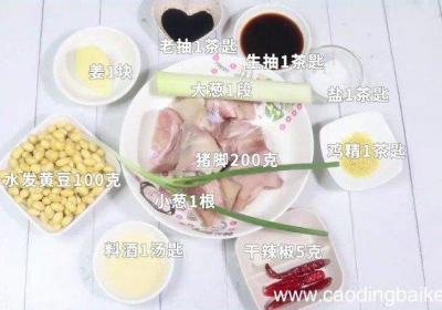 发布时间: 12小时前步骤1主料:猪蹄200克、黄豆100克辅料:姜1块、陈皮5克、红枣5颗、小葱1根、盐1茶匙、料酒1茶匙、花椒5克、白胡椒粉5克步骤2猪蹄洗净 。步骤3黄豆浸泡2小时 。步骤4红枣洗净 。步骤5【黄豆炖猪蹄怎么做 黄豆炖猪蹄做法是什么】小葱切...