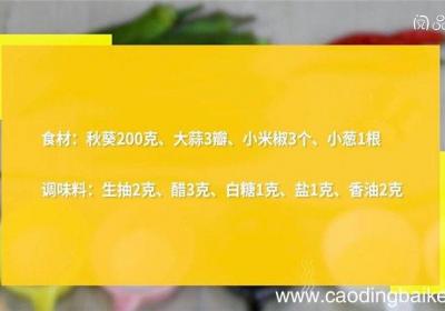 发布时间: 8小时前步骤1食材:秋葵200克、大蒜3瓣、小米椒3个、小葱1根、生抽2克、醋3克、白糖1克、盐1克、香油2克 。步骤2锅中放水煮沸,放入秋葵焯烫2分钟,捞出,摆入盘中 。步骤3大蒜切末 。步骤4小米椒切小圈 。步骤5小葱切葱花 。步骤6小碗中放入...