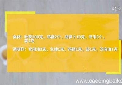 发布时间: 7小时前步骤1食材:秋葵100克,鸡蛋2个,胡萝卜10克,虾米3个,姜1克调味料:食用油3克,生抽1克,鸡精1克,盐1克,芝麻油1克【秋葵蛋汤的做法 秋葵蛋汤怎么做】 步骤2秋葵洗净,去蒂,切圈 。步骤3胡萝卜切片 。步骤4姜切末,鸡蛋打散,虾米洗...