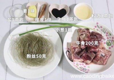 发布时间: 15小时前步骤1准备食材:牛骨200克、粉丝50克、料酒1茶匙、盐1茶匙、桂皮1块、生抽1茶匙、小葱1根、姜1块 。步骤2牛骨提前让老板剁成小块,洗净备用 。步骤3姜切片 。步骤4葱切葱花 。步骤5粉丝用水浸泡30分钟 。【牛骨粉丝汤的做法 牛骨粉丝...