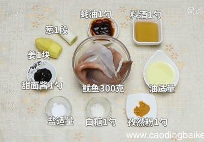 发布时间: 15小时前步骤1准备食材:鱿鱼300克、甜面酱1勺、姜1块、葱1段、料酒1勺、白糖1勺、孜然粉1勺、蚝油1汤匙、油适量、盐适量 。步骤2葱切段 。步骤3姜切片 。【酱汁鱿鱼的做法 如何做酱汁鱿鱼】步骤4鱿鱼剥去外皮 。步骤5将鱿鱼从里面划上十字花刀...
